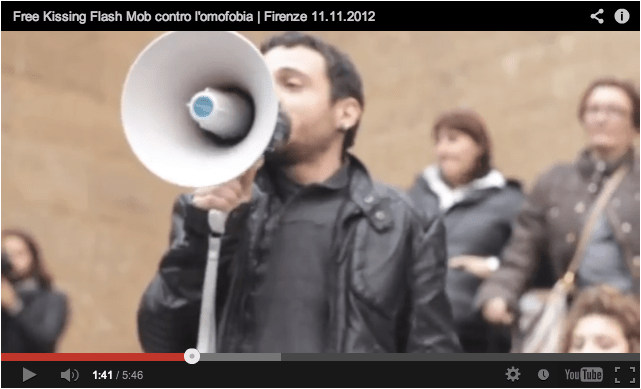A few days after one gay couple got bullied and brutally beaten right in the center of Florence just because they were kissing and holding hands, a group of young people decided do show their indignation by organizing a Flash Mob where everyone could kiss freely, gay or straight, men or women, young or old. Here is what it looked like.